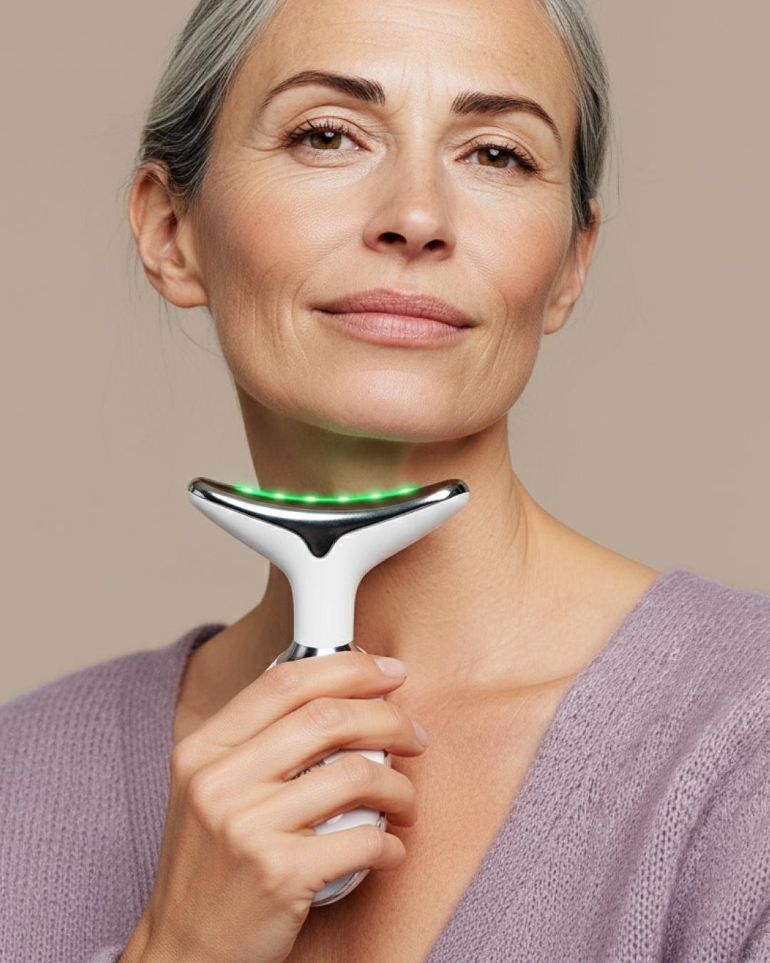The RenewaLift Device combines two powerful, non-invasive technologies—LED light therapy and EMS (electrical muscle stimulation)—to visibly lift, tone, and rejuvenate mature skin.